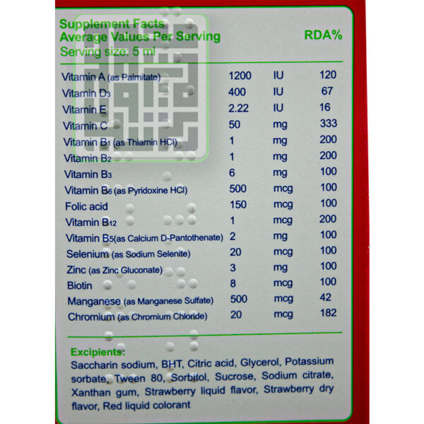 - برای کودکان 1 تا 8 سال 5 میلیلیتر روزانه (یک قاشق مرباخوری یکبار در روز)