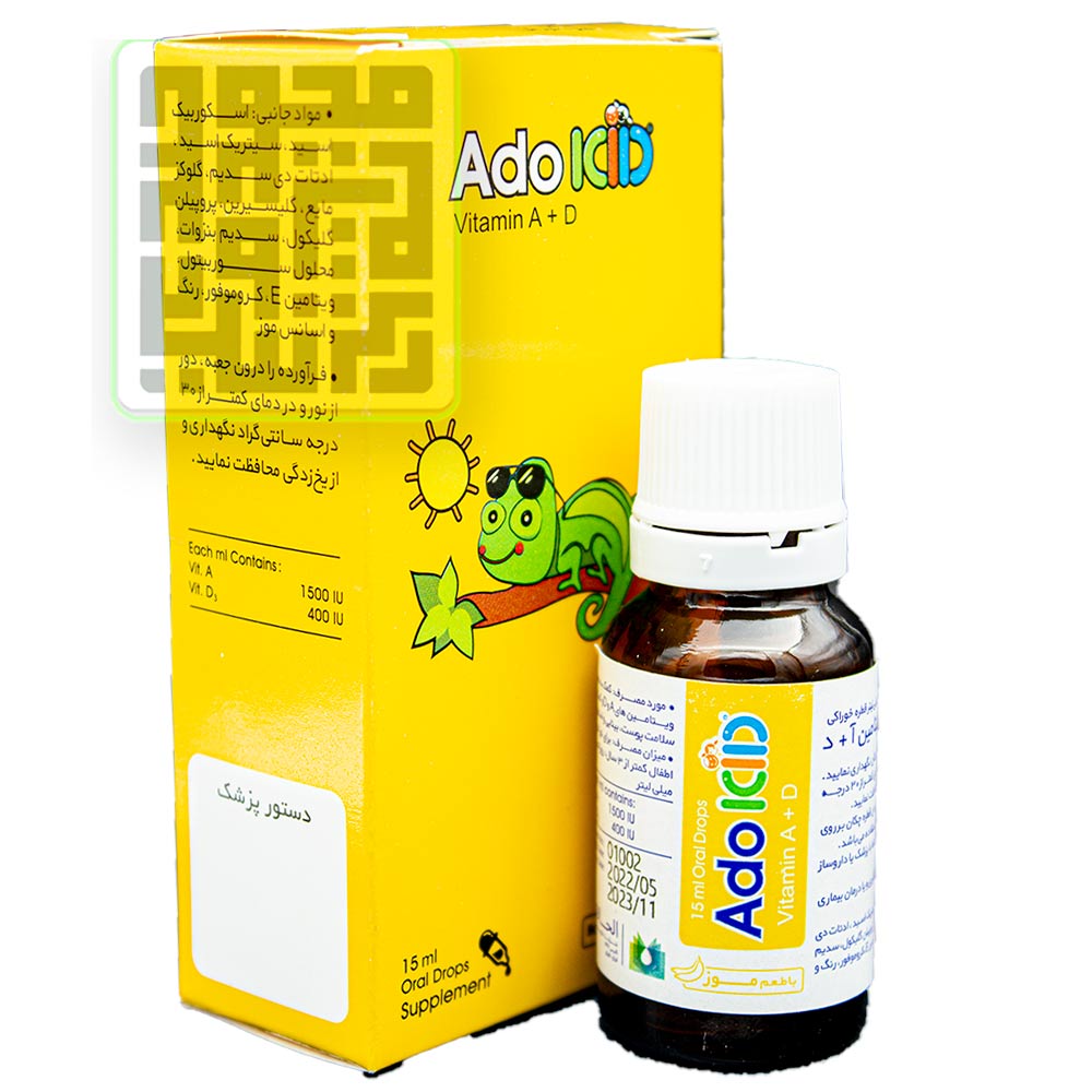 قطره ویتامین آ+د آدوکید یک مکمل دارویی که شامل ویتامین A+D است. این ویتامین‌ها جز مواد معدنی است، بدن نمی‌تواند آنها را تامین کند. این قطره نیاز روزانه نوزادان و کودکان را تامین می‌کند. کمبود ویتامین A در بدن باعث ایجاد بیمارهای عفونی می‌شود، ویتامین A باعث رشد و نمو طبیعی بدن، و برای سلامت پوست و چشم‌ها ضروری است. کمبود ویتامین D در بدن باعث نرمی‌استخوان‌ها می‌شود. ویتامین D موجود در این قطره باعث افزایش جذب کلسیم در بدن نوزادان و کودکان می‌شود. همچنین باعث سلامت استخوان‌ها و دندان‌ها، و سیستم ایمنی بدن و عملکرد بهتر مغز می‌شود. انتخاب این قطره گزینه مناسبی برای تامین ویتامین A و ویتامین D روزانه برای کودکان و نوزادان است.