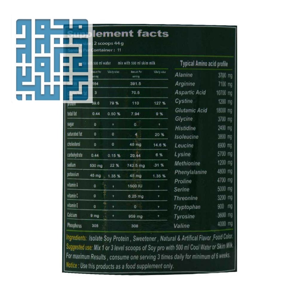 این مکمل بدنسازی پروتئین سوی پرو اپکس یک مکمل کاملاً گیاهی است که از پروتئین ایزوله شده سویا بهدست آمده و مخصوص ورزشکاران گیاهخوار یا افرادی طراحی شده که به لاکتوز حساس هستند. این محصول با فراهمآوردن تمامی آمینواسیدهای ضروری، از جمله لوسین، والین، آرژنین، تریپتوفان و … یک گزینه کامل برای تأمین نیازهای پروتئینی بدن در دورههای تمرین شدید، افزایش حجم و کاهش وزن به شمار میآید. به لطف میزان پایین چربی، قند و کلسترول، این مکمل در مسیر ساخت عضله بدون افزایش چربی بدن موثر عمل میکند و نقش مکملی پررنگ در برنامه تغذیهای ورزشکاران دارد.