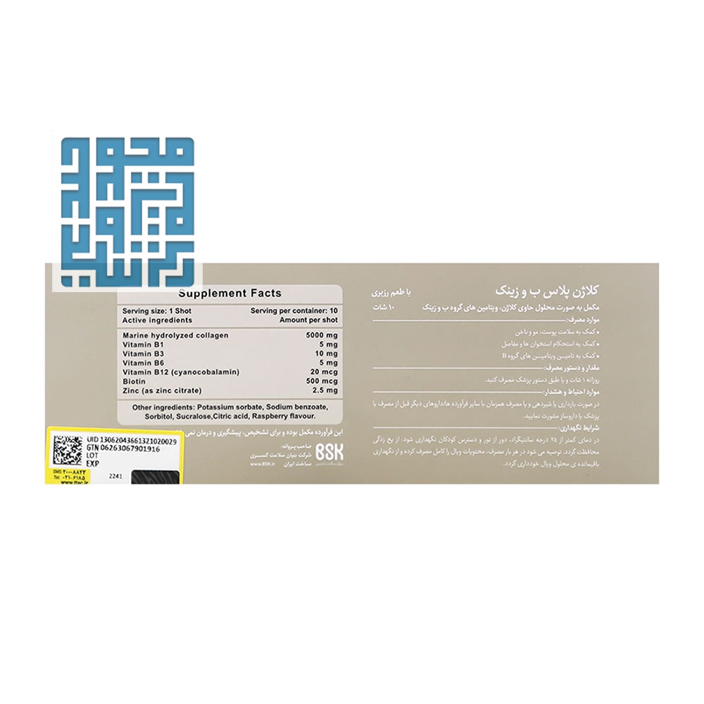 ترکیبات کلاژن پلاس ویتامین B و زینک بنیان سلامت کسری 10 عدد