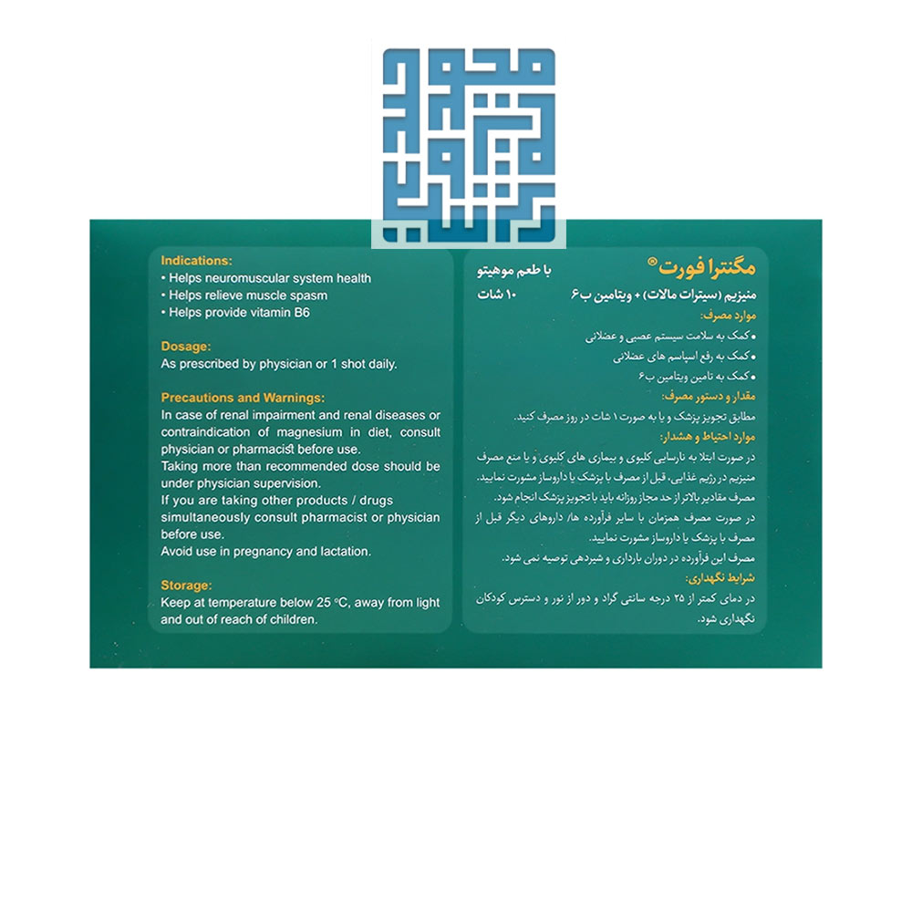 برای بهرهمندی کامل از مزایای شات مگنترا فورت 400 میلی گرم بی اس کی 10 عدد، روزانه یک شات 25 میلیلیتری را میل کنید. شات را پیش از مصرف خوب تکان دهید تا ترکیبات بهدرستی مخلوط شود. نوشیدن شات در یک ساعت ثابت از شبانهروز، باعث ایجاد نظم در مصرف و جذب بهتر خواهد شد. افزایش دوز تنها با نظر پزشک مجاز است و افراد با بیماری کلیوی باید با متخصص مشورت نمایند.