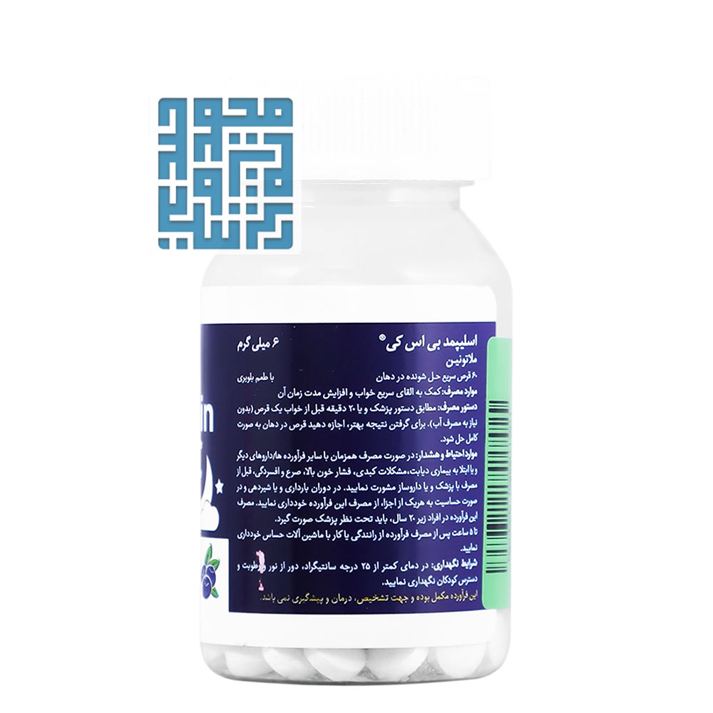 قرص اسلیپمد 6 میلی گرم بنیان سلامت کسری یک مکمل ملاتونین است که برای تنظیم چرخه خواب و بیداری و کاهش مدت زمان رسیدن به خواب استفاده میشود. این محصول به صورت قرص سریع حل شونده با طعم بلوبری عرضه میشود. کاربرد اصلی آن برای کمک به رفع بی خوابی، جت لگ و اختلالات خواب شیفت کاری است.