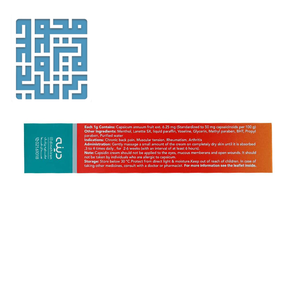 در ادامه با ترکیبات مهم کرم کاپسیدین دینه (Capsidin Cream) که به عنوان یکی از پرطرفدارترین محصولات تسکیندهنده موضعی در بازار ایران شناخته میشود، آشنا میشوید. این محصول به صورت کرم عرضه شده و استفاده از آن باعث اثرگذاری سریعتر در ناحیه درد میشود.
