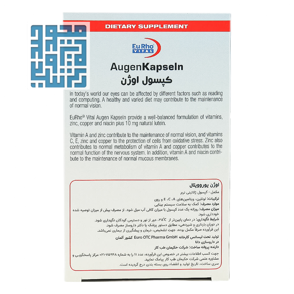 خرید آنلاین کپسول چشم اوژن یوروویتال ۶۰ عددی از داروخانه داروچی