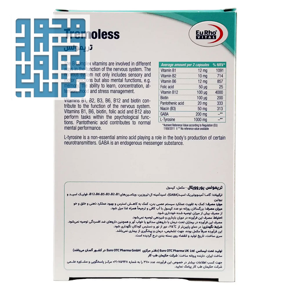 قرص تریمولس یوروویتال با ترکیب دقیق ریزمغذیهای فعال، بهعنوان یک مکمل تغذیهای پیشرفته برای پشتیبانی از عملکرد سیستم عصبی معرفی شده است. کپسول تریمولس یوروویتال با دارا بودن مجموعهای از ویتامینهای گروه B، GABA و ال-تیروزین، راهی نوین برای تقویت ارتباطات عصبی و حفظ کارایی شبکههای عصبی فراهم میکند. این مکمل تریمولس یوروویتال با هدف کمک به سلولهای عصبی در مصرف انرژی و مقابله با استرسهای روزانه ساخته شده و مصرف مداوم آن باعث افزایش مقاومت عصبی و ارتقای کیفیت زندگی میشود.