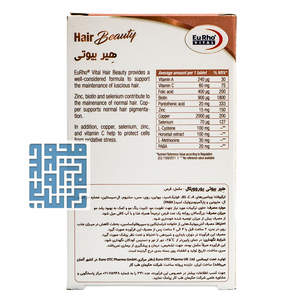 ترکیبات قرص هیر بیوتی یوروویتال 30 عددی