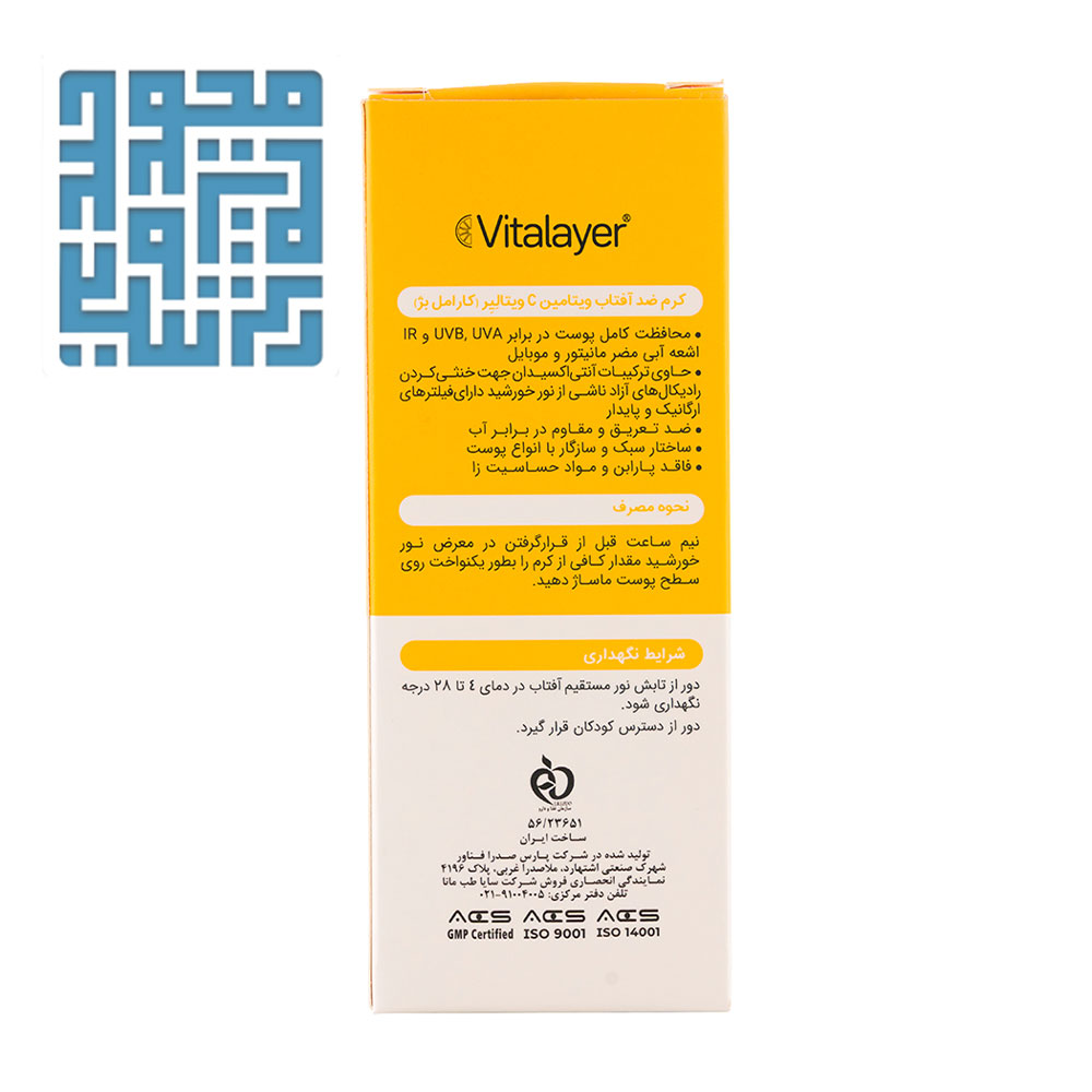 مشخصات ضد آفتاب ویتالیر SPF50 ویتامین سی