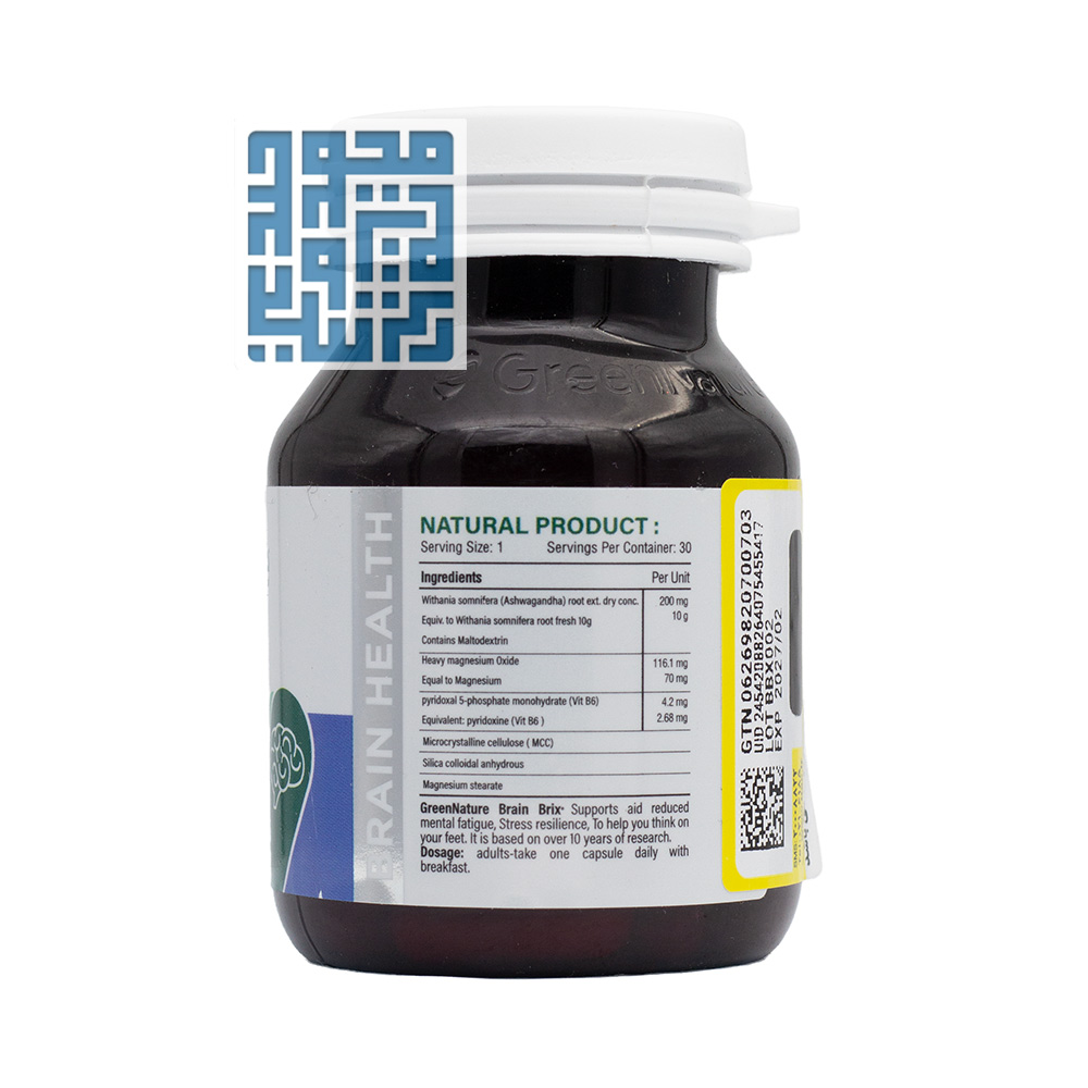 کپسول Brain Brix Green Nature ترکیبی از آشواگاندا، منیزیم و B6 فعال است که هر سه جزء از نظر اثربخشی علمی پشتیبانی میشوند. تفاوت اصلی آن با سایر مکملها در استفاده از فرمهای فعال و دوزهای مؤثر ترکیبات است که در جذب بهتر و پشتیبانی از عملکرد شناختی نقش دارند.