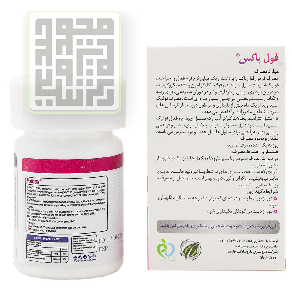 قرص فول باکس‌ های هلث حاوی اسید فولیک بوده که به کاهش خطر نقص لوله عصبی در جنین معروف است.