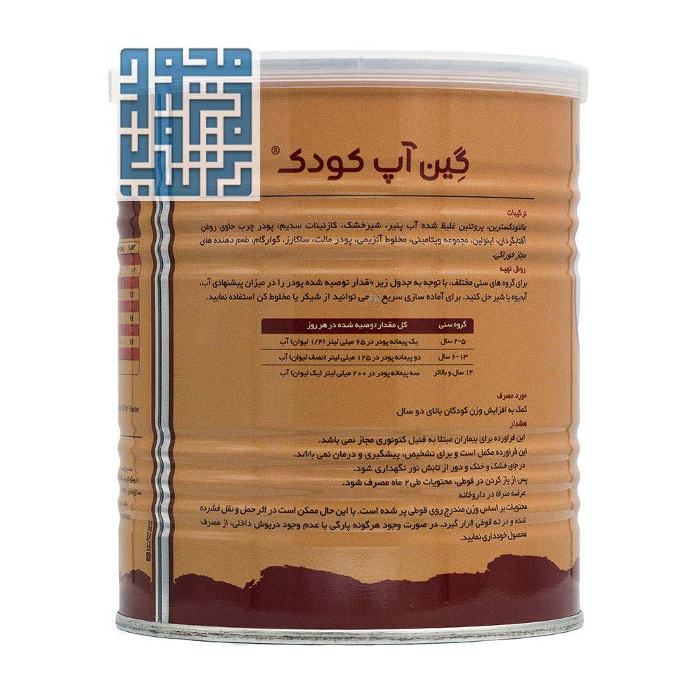جدول ترکیبات پودر گین آپ کودکان کارن