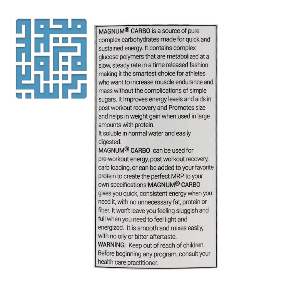 پلیمرهای گلوکز پیچیده از جمله منابع پایدار انرژی هستند که در قالب کربوهیدراتهای زنجیرهای در پودر کربو 2270 گرمی مگنوم به کار رفتهاند. این نوع کربوهیدراتها با آزادسازی آهسته، انرژی بدن را برای مدت طولانی تأمین میکنند و مانع افت ناگهانی قند خون میشوند. در هر وعده ۱۳۰ گرمی از این مکمل، حدود ۹۶ گرم کربوهیدرات کل وجود دارد که نقش اساسی در تامین گلیکوژن عضلات ایفا میکند.