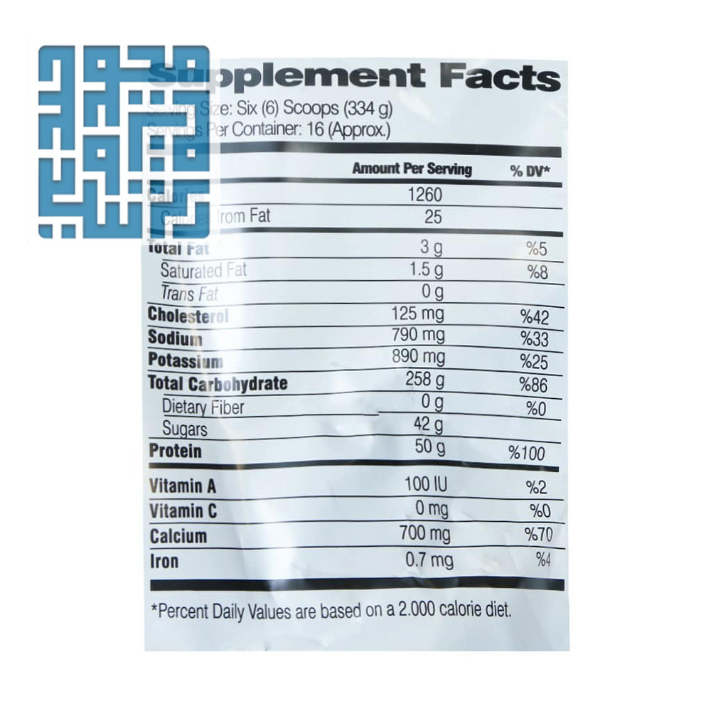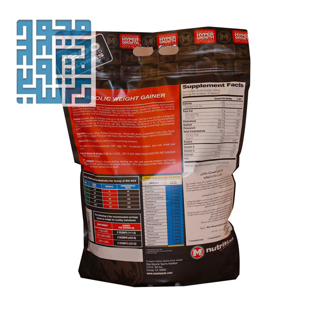 در هر وعده 334 گرمی از بیگ مکس مکس ماسل، معادل 1285 کیلوکالری انرژی تأمین میشود. این میزان کالری برای تامین انرژی تمرینات قدرتی و افزایش وزن در افرادی با متابولیسم بالا ضروری است.