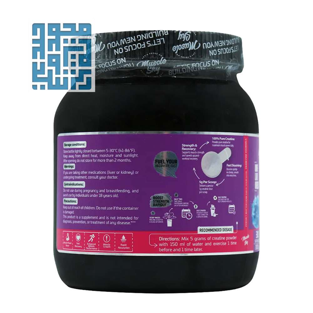 پودر کراتین ماسل اسکای 300 گرم با هدف تامین انرژی سریع و تقویت ظرفیت عضلات در تمرینات قدرتی عرضه می شود. هسته اصلی این محصول بر پایه کراتین مونوهیدرات (Creatine Monohydrate) بنا شده که به عنوان شناخته شده ترین فرم کراتین در مکمل های ورزشی مطرح است. این ماده در کنار آب به عنوان حامل حل شوندگی، ساختاری ساده و خالص ایجاد کرده که تمرکز آن بر افزایش توان عضلانی و حمایت از عملکرد ورزشی است. وجود کراتین خالص در هر وعده، مسیر تامین ATP و تقویت قدرت انفجاری را هموار می کند.