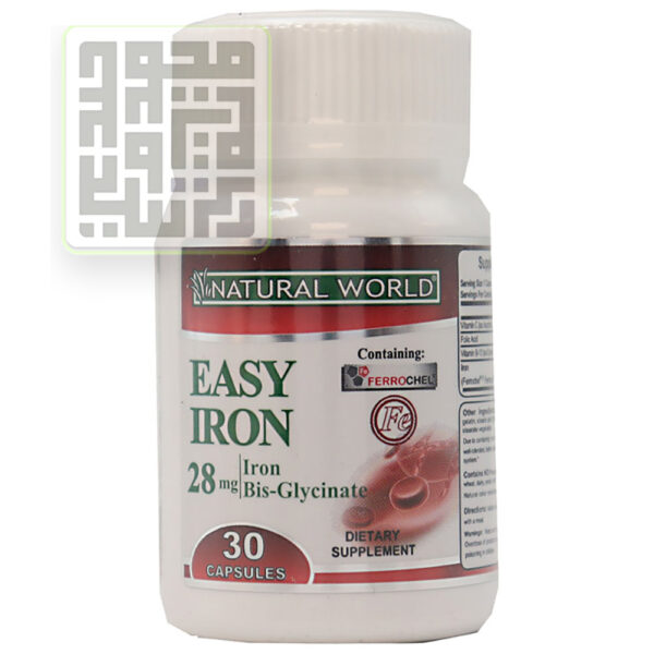 کپسول ایزی آیرون نچرال ورلد، یک مکمل غذایی مناسب برای همه افراد بوده و یک فرآورده تخصصی برای درمان و کنترل کمخونی ناشی از فقر آهن است. کپسول ایزی آیرون حاوی آهن بهصورت فروس بیس گلیسینات، فولیکاسید، ویتامین ب 12 و ویتامین سی میباشد.