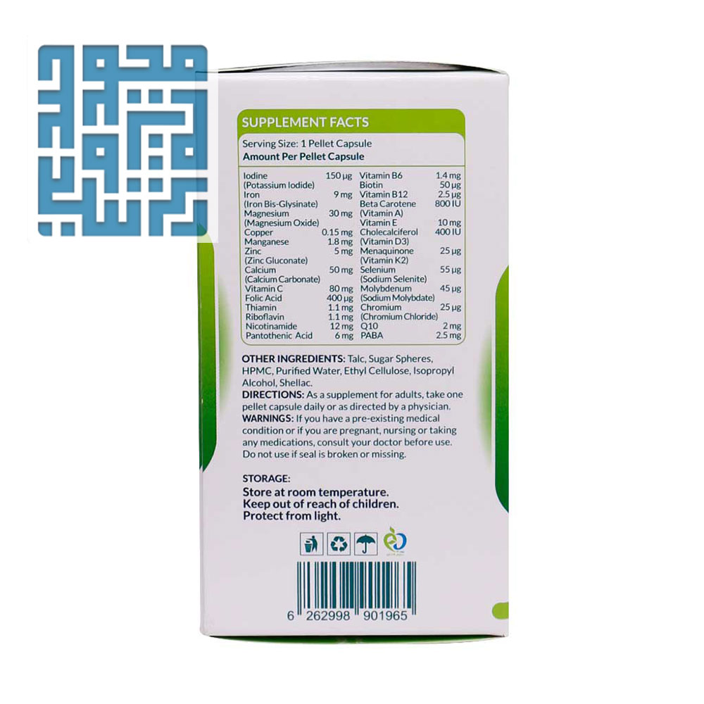 عنصر ید در فرم پتاسیم یداید، برای ساخت هورمونهای تیروئیدی ضروری است. این هورمونها نقش تعیینکنندهای در متابولیسم، رشد مغزی و تنظیم دمای بدن دارند. هر کپسول حاوی 150 میکروگرم ید است که معادل نیاز روزانه بزرگسالان میباشد.