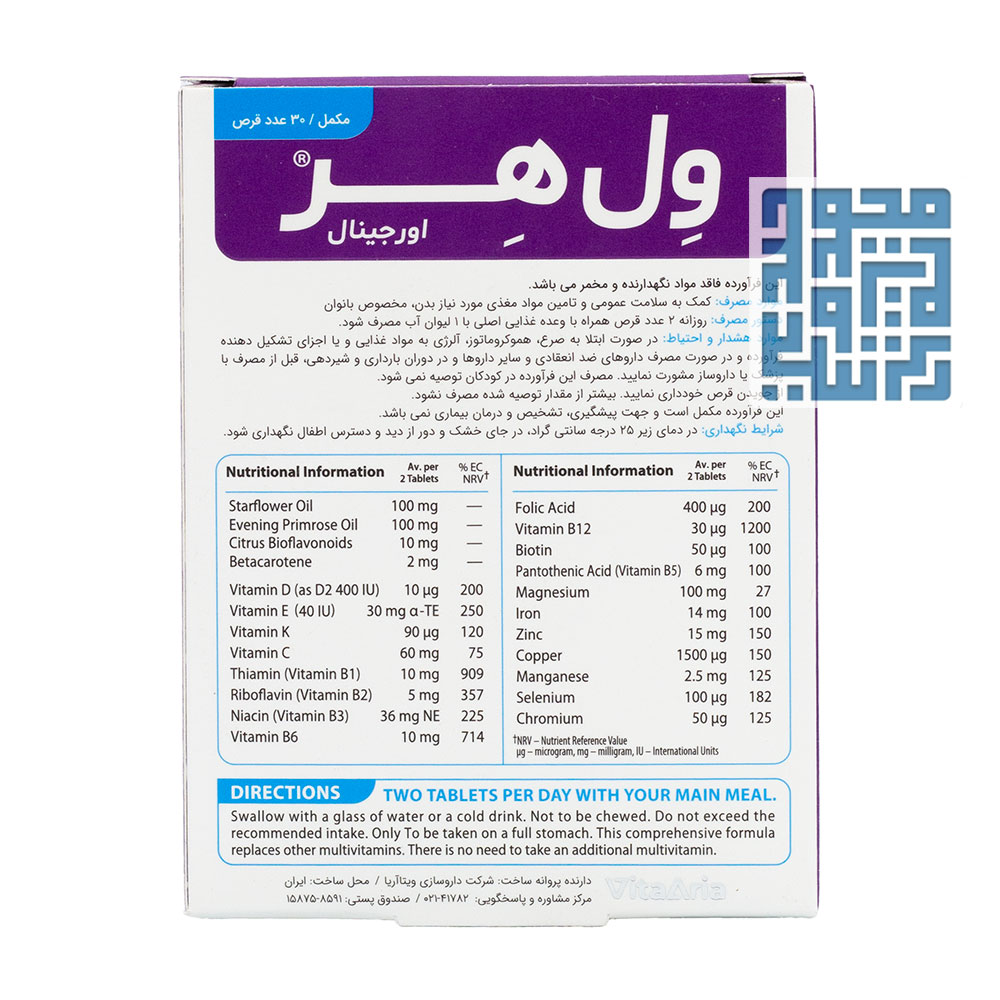 بررسی کپسول ول وومن(ولهر) اورجینال ویتابیوتیکس مخصوص خانم ها 30 عددی