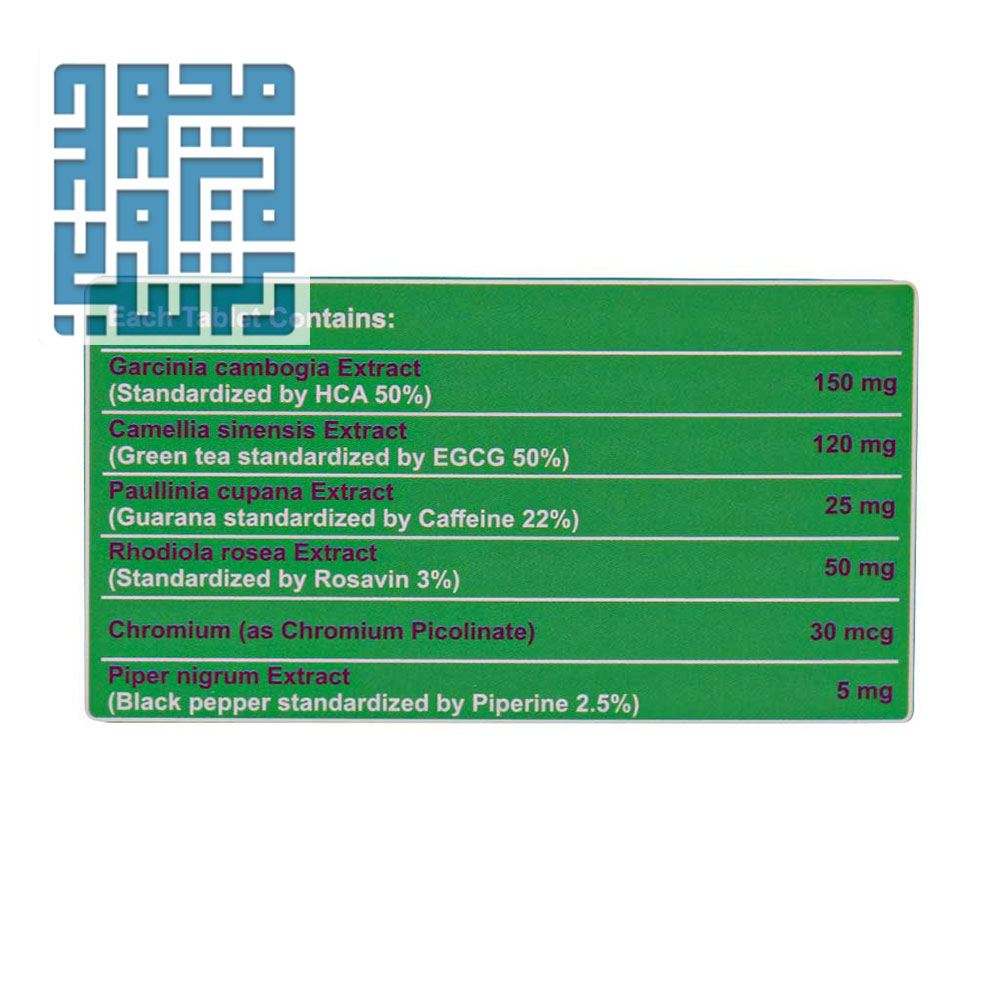 این مکمل، فرآوردهای تخصصی و کاملاً گیاهی است که از عصارههای گارسینیا کامبوجیا، چای سبز، گوارانا، رودیولا رزا، فلفل سیاه و کروم پیکولینات تهیه شده است. فرمولاسیون علمی این قرص باعث شده علاوه بر کاهش اشتها، نقش موثری در افزایش چربیسوزی، بهبود حساسیت به انسولین و کاهش چربیهای مقاوم ایفا کند.