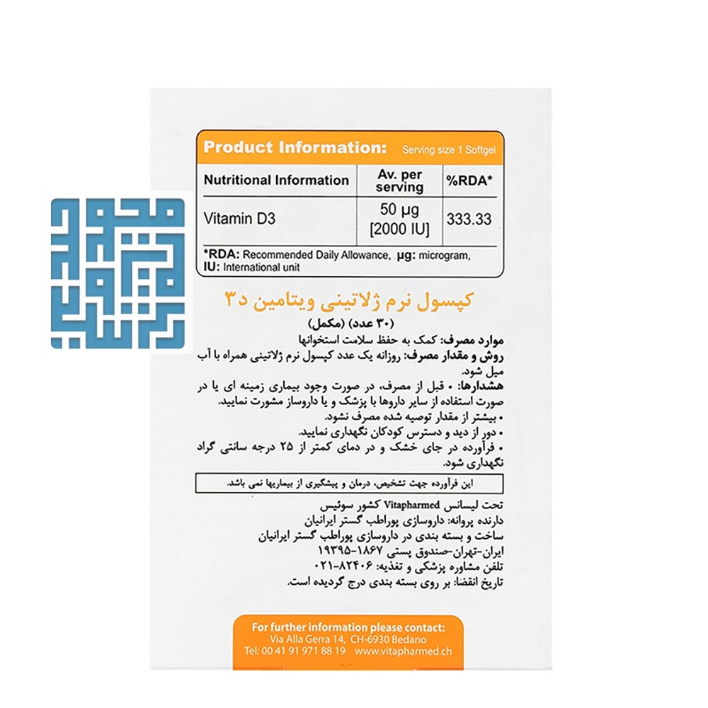 ترکیبات کپسول نرم ژلاتینی ویتامین D3 2000 واحد ویواتیون 30 عدد